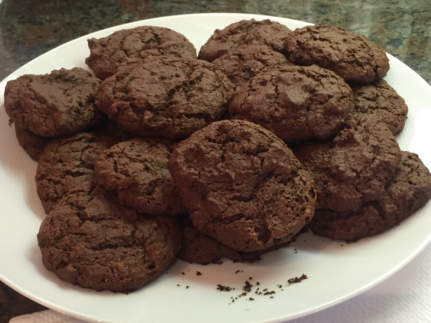 But today, I was oddly inspired to give it one more shot . . .I had pinned a recipe earlier in the week for chocolate cookies. Based on all my previous attempts, I had a sense, just from reading the recipe, that they might work out. And so . . . I gave it a shot.